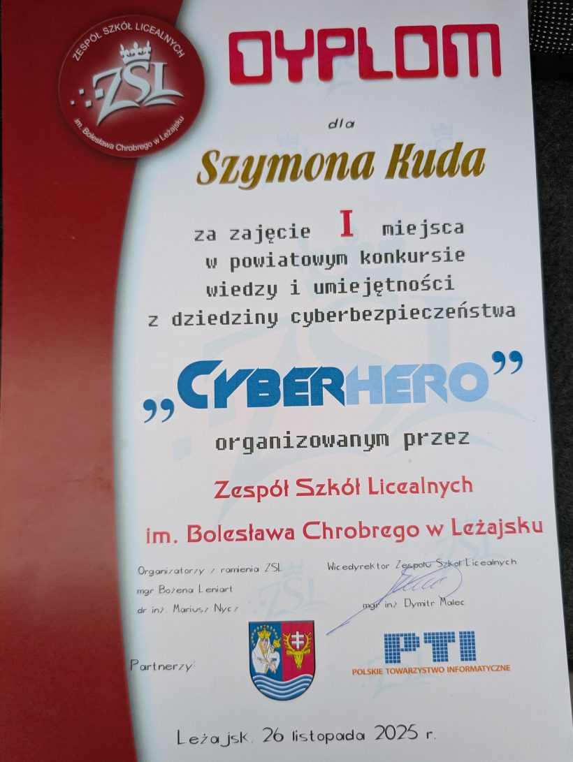 Sukces ucznia naszej szkoły w konkursie CyberHero!