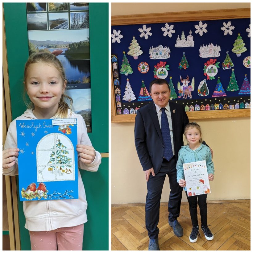 Praca Zuzi została przekazana do druku i stała się oficjalną kartką Gminy Leżajsk z okazji Świąt Bożego Narodzenia 2023 r., a następnie wysłana do mieszkańców naszej miejscowości.