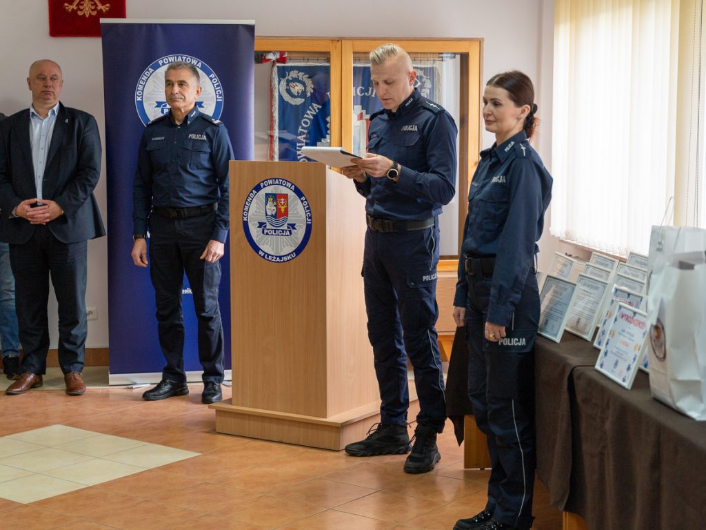 W dniu 27 listopada 2025 roku w Komendzie Powiatowej Policji w Leżajsku przedstawiciele władz samorządowych- wśród nich Burmistrz Leżajska pan Krzysztof Trębacz, Starosta Powiatu pan Zdzisław Leśko- oraz Komendant Policji w Leżajsku pan Ryszard Tyka wręczyli zwycięzcom i wyróżnionym uczestnikom konkursu dyplomy i nagrody. Wśród autorów wyróżnionych prac plastycznych znależli się uczniowie szóstej klasy Zespołu Szkół w Dębnie : Zuzanna Rydzik i Szymon Dziob. Serdecznie im gratulujemy. Dyrektorzy szkół otrzymali listy gratulacyjne. Uroczystość poprowadził oficer policji pan Daniel Żak.