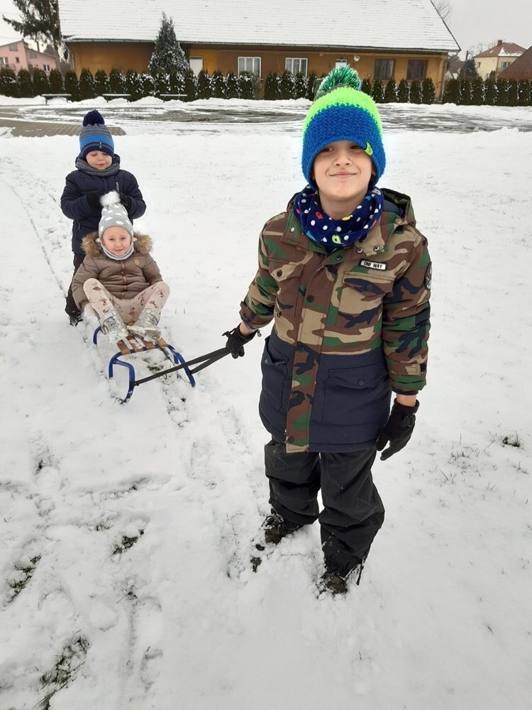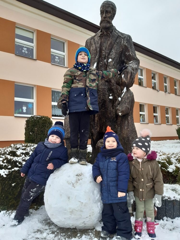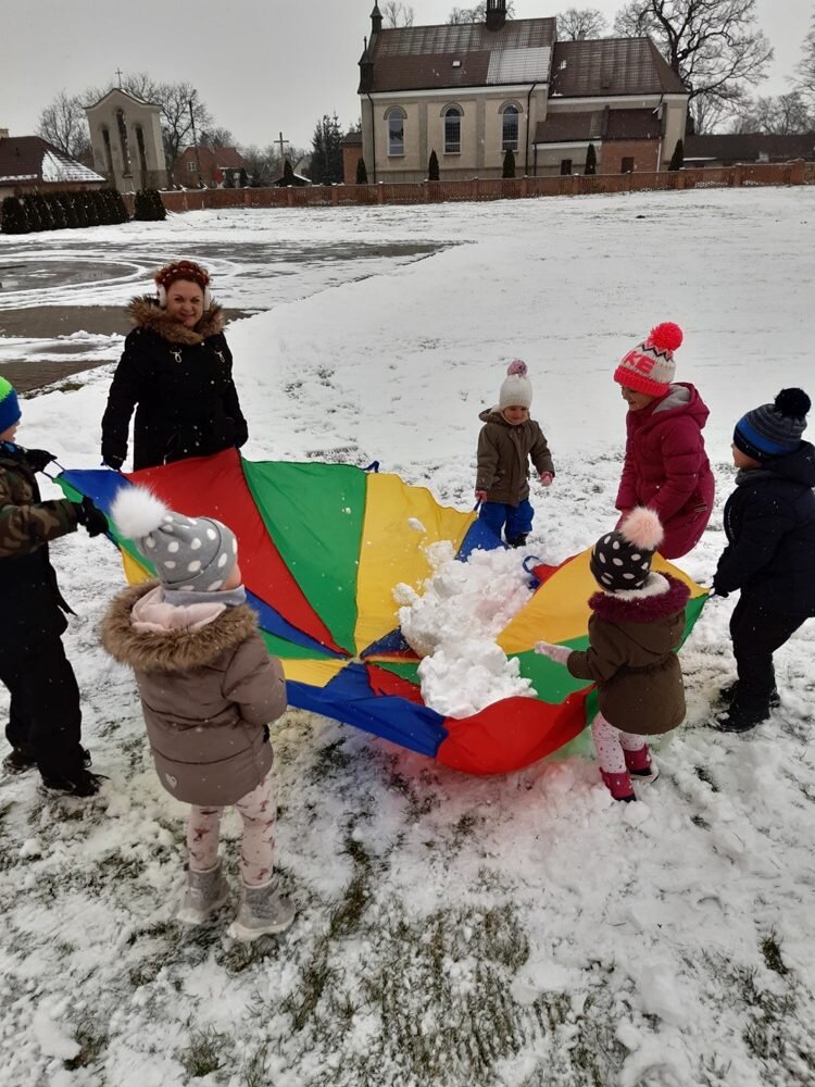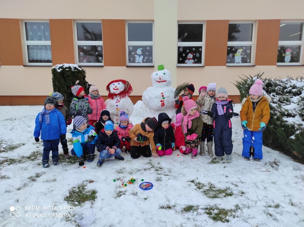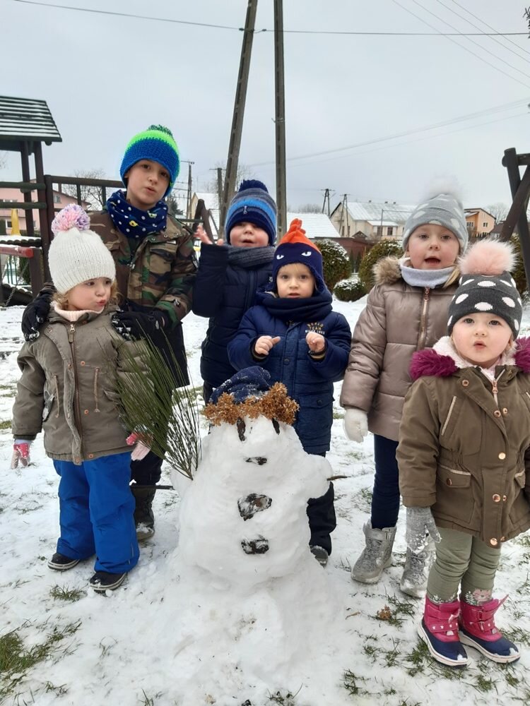 Śnieg sprawił nam wiele radości i możliwości do zabawy na świeżym powietrzu. Przedszkolaki korzystając ze sprzyjającej pogody ulepiły bałwana, odbyły podróż wokół boiska na sankach, odbijały ślady na śniegu i uczestniczyły aktywnie w bitwie na śnieżki.