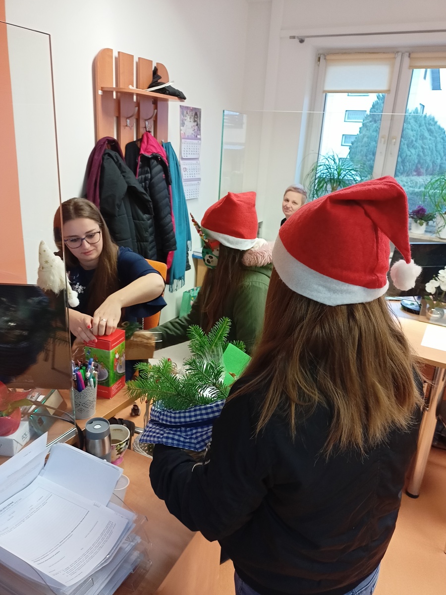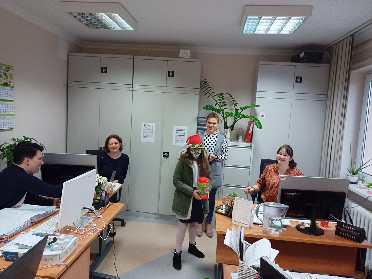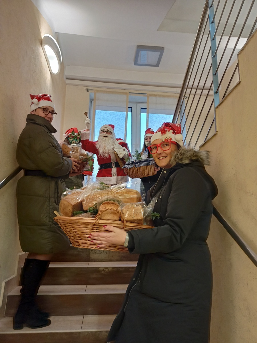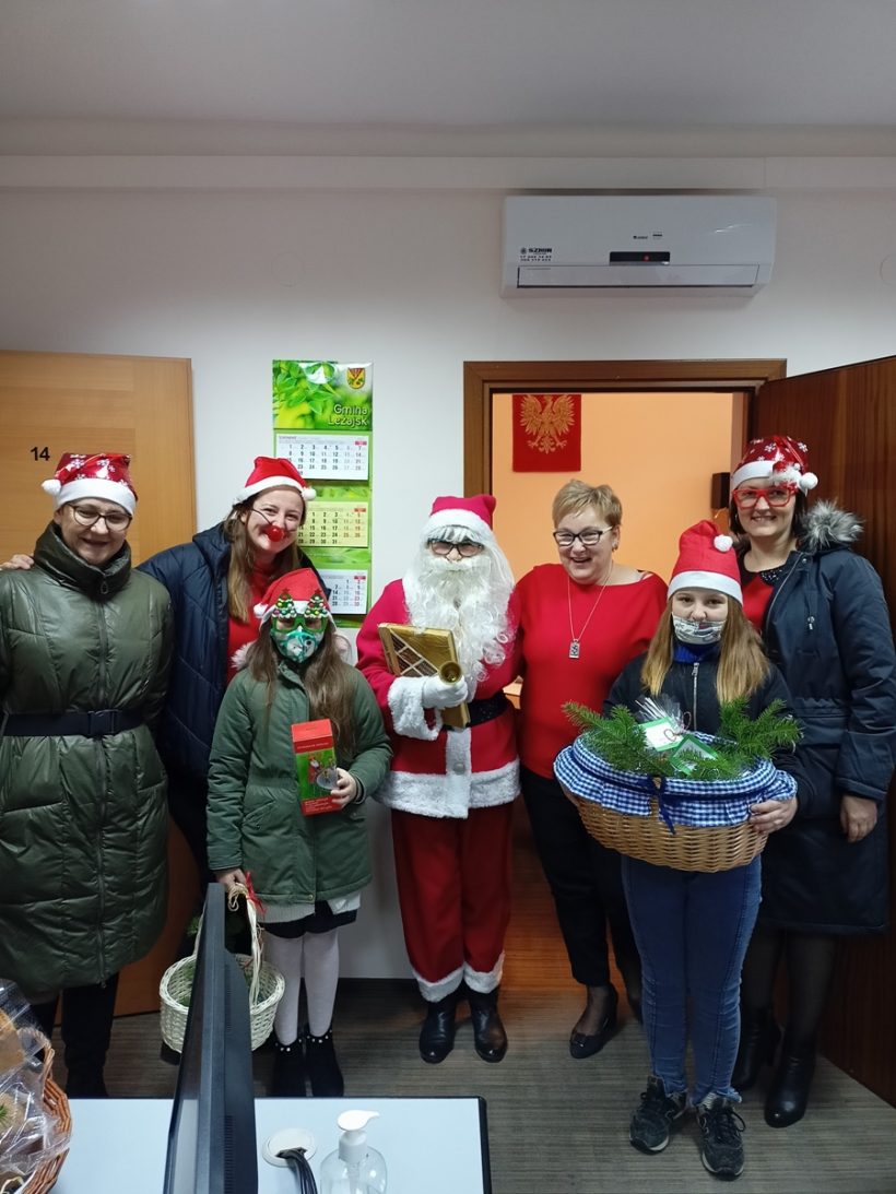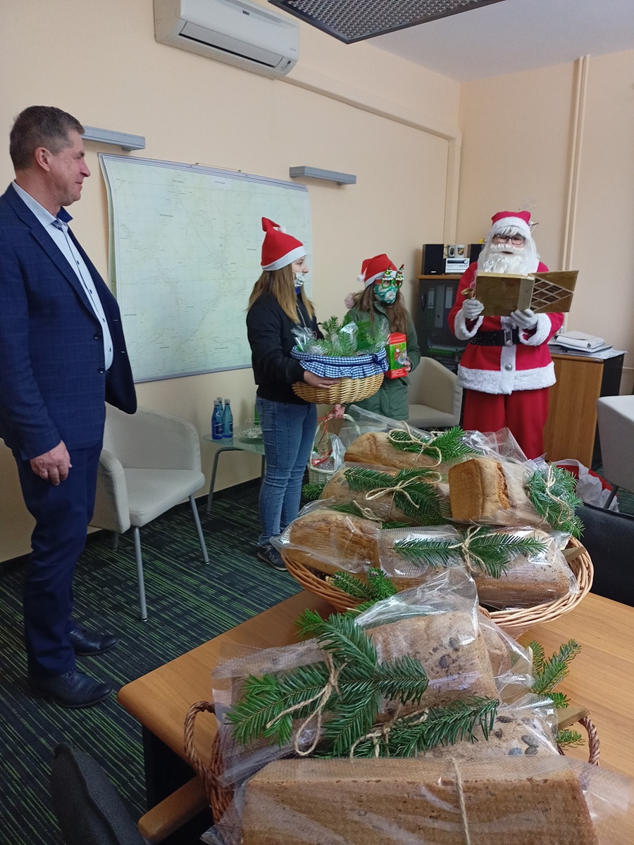 Nasze tegoroczne stypendystki Maja i Julia podjęły się zbiórki pieniędzy na kolejne stypendia dla naszych uczniów, które będą wręczone w przyszłym roku szkolnym. W zbiórce pomógł św. Mikołaj, który wraz z dziewczynkami odwiedził Urząd Gminy w Leżajsku i zachęcił pracowników gminy do wsparcia tej szlachetnej inicjatywy. Pracownicy urzędu okazali wielkie serce i ostatecznie udało się uzbierać kwotę 900zł! Mikołaj obdarował darczyńców pachnącym świeżym chlebem. Dziewczynki podarowały pracownikom urzędu pierniki, które wcześniej z pomocą klasy IV udekorowały i spakowały.