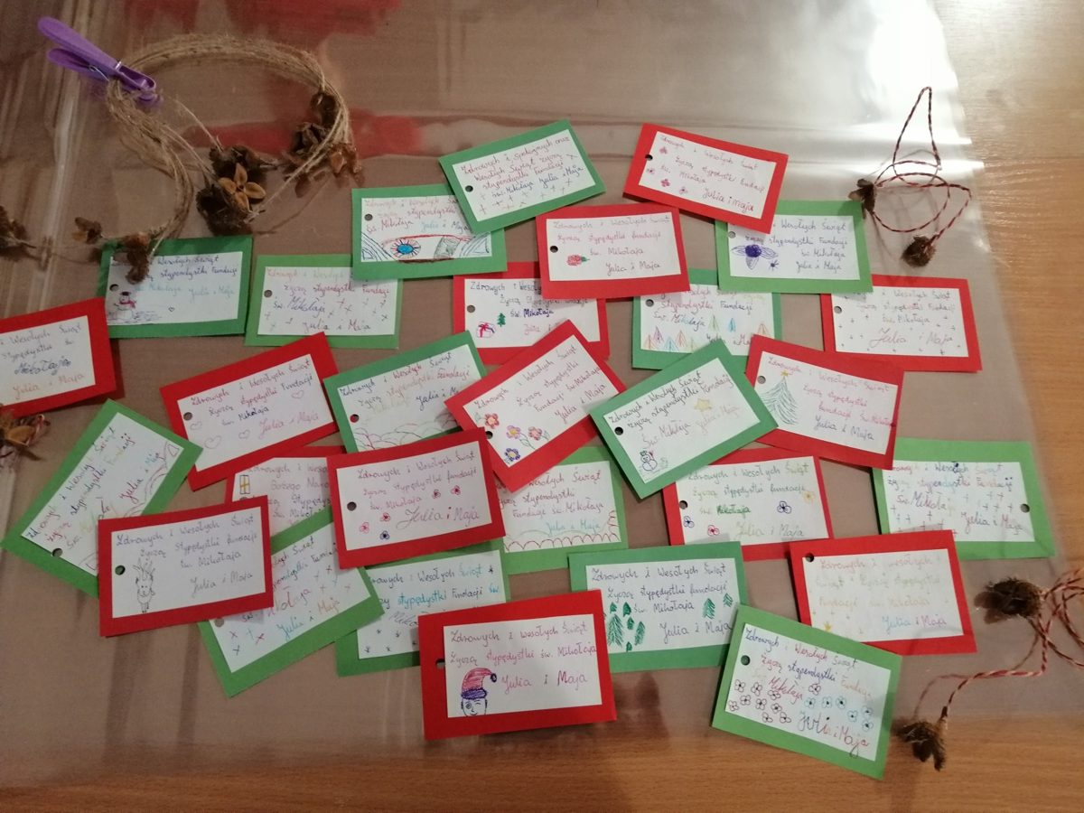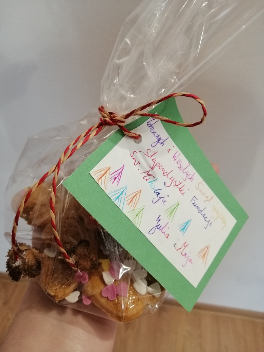 Do pięknie spakowanych pierników życzenia dołączyły nasze tegoroczne stypendystki, a wspólne działania uczniów wpisują się w założenia programu ,,SP! Serce i Pomoc”